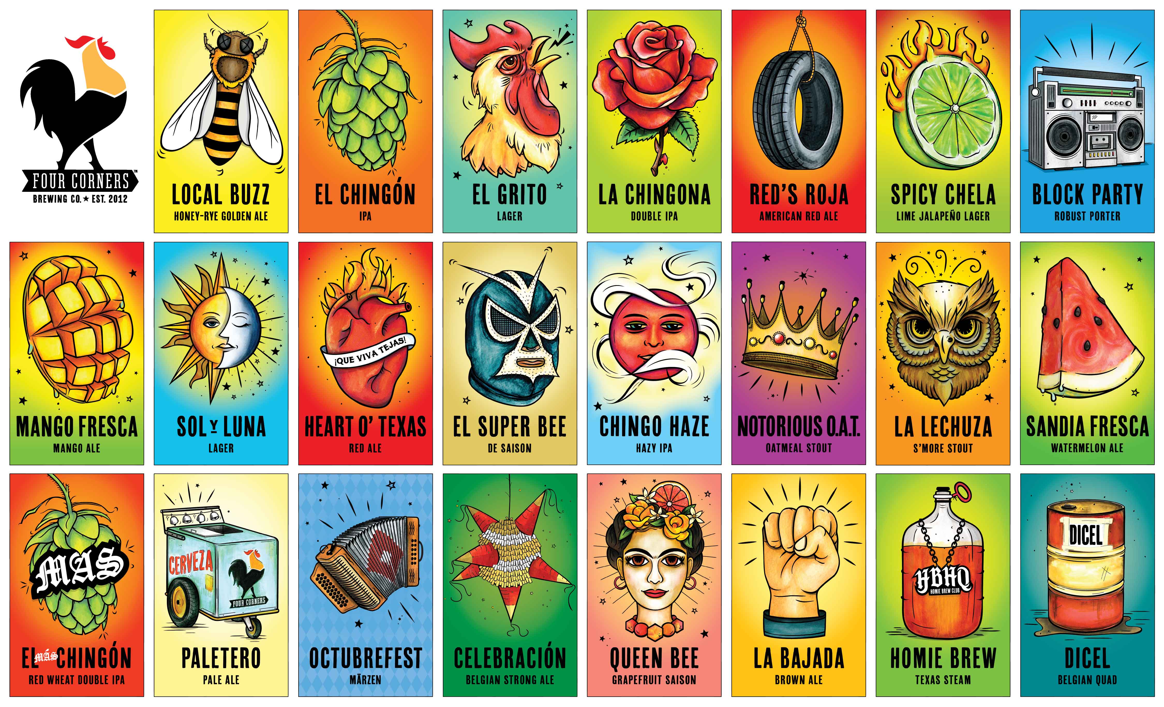 Four Corners beer brands drew inspiration from Lotería, adapting its modular system into a dynamic beer brand architecture. This approach created a unique visual identity that bridged cultures and connected people beyond beer.
