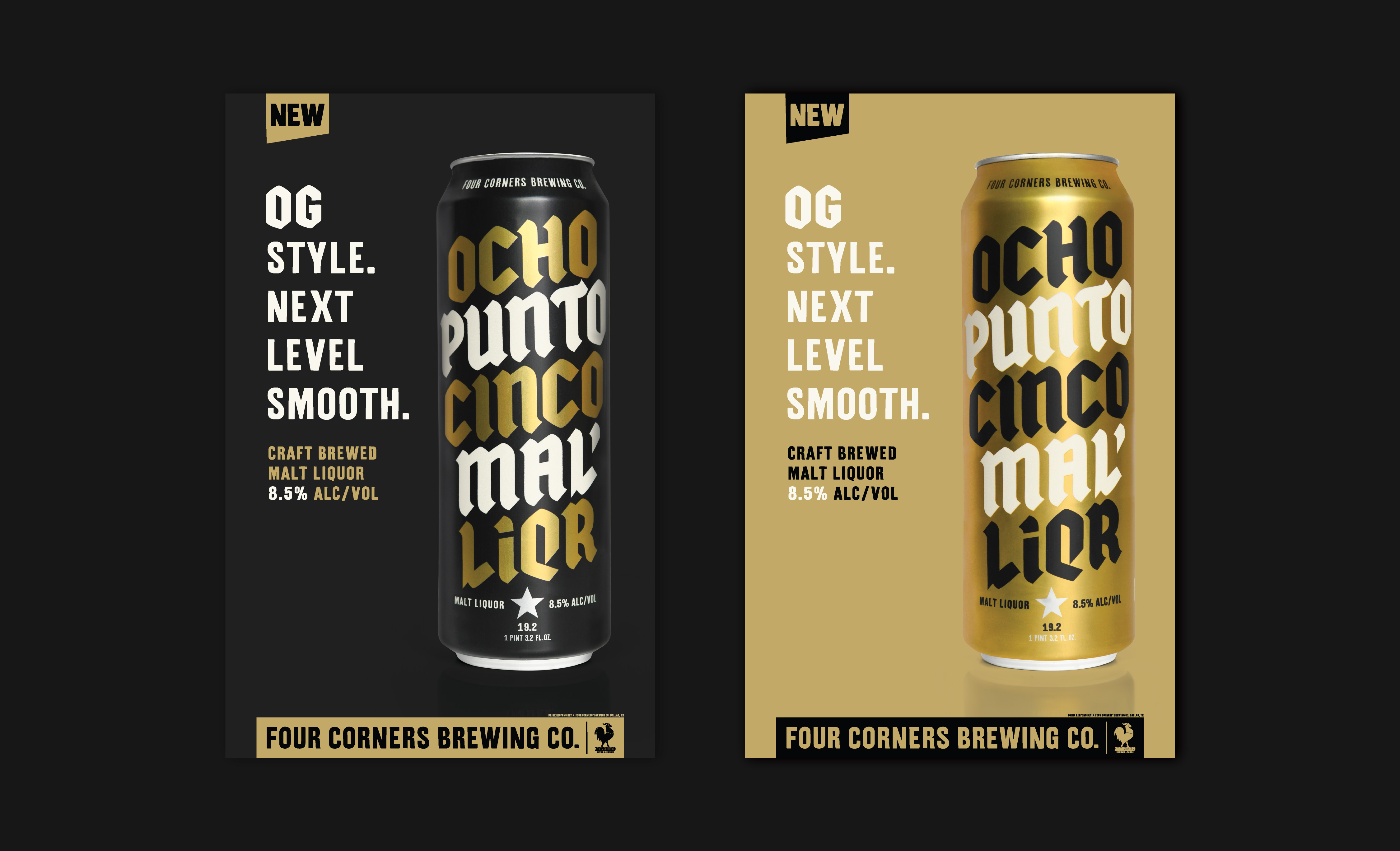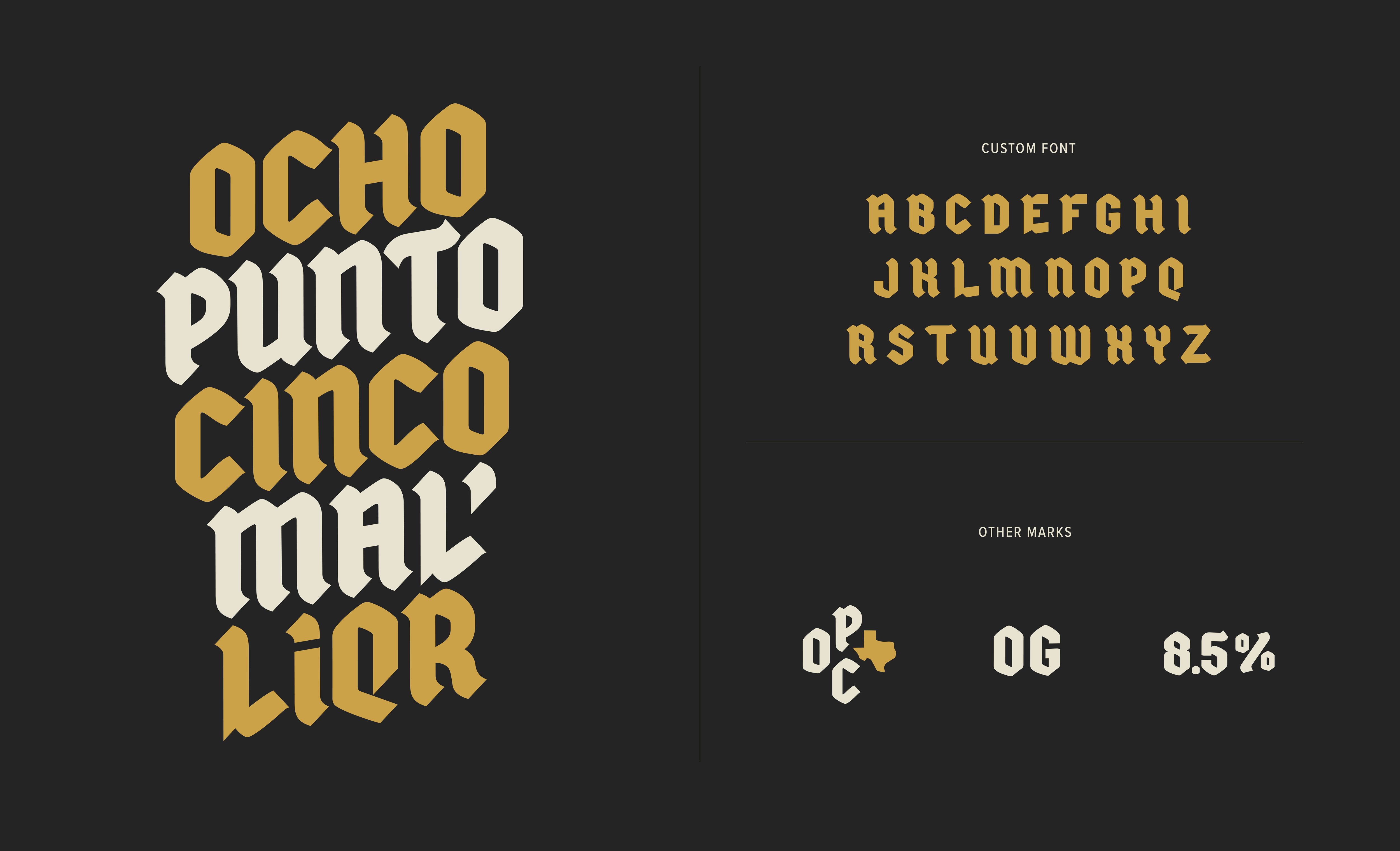 The tall 19.2 oz can provided the ideal canvas to amplify the beer’s defining feature, capturing attention and educating shoppers. To elevate the brand’s visual identity, I created a custom typeface inspired by the Old English font face, blending modern, bold, and traditional elements to perfectly embody the OG style of the beer inside.